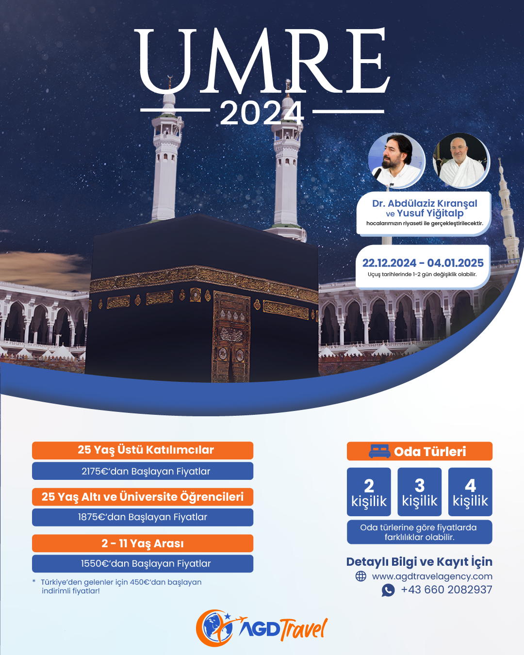 AGD Travel olarak düzenleyeceğimiz Umre Programı'nda sizleri de aramızda görmekten mutluluk duyarız.